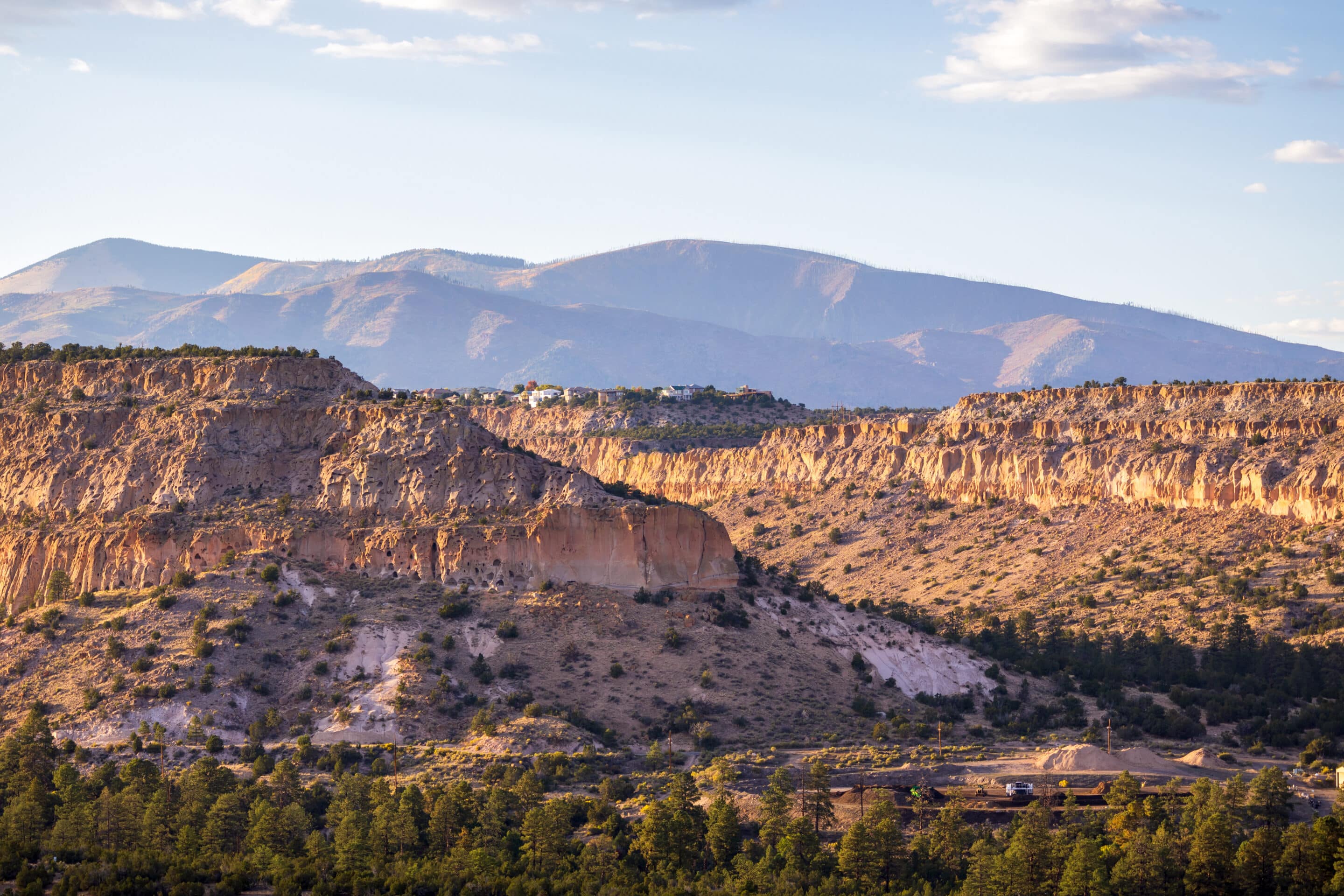 Los Alamos sits on the Pajarito Plateau at an elevation of about 7,300 feet, offering cooler temperatures and stunning canyon and mesa views.